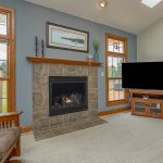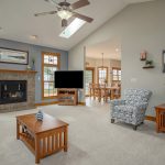 The open-concept layout flows seamlessly from the living area to the kitchen, making it ideal for everyday living and entertaining. The kitchen features striking granite countertops and a matching backsplash (updated in 2021 per seller), with ample cabinetry and prep space. A cozy gas fireplace adds warmth and charm to the heart of the home.
