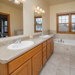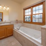 The primary suite is a true retreat—double door entry welcomes you into a spacious bedroom with a generous walk-in closet and a spa-inspired en-suite bathroom, complete with a jetted tub, walk-in shower, and double vanity sink.